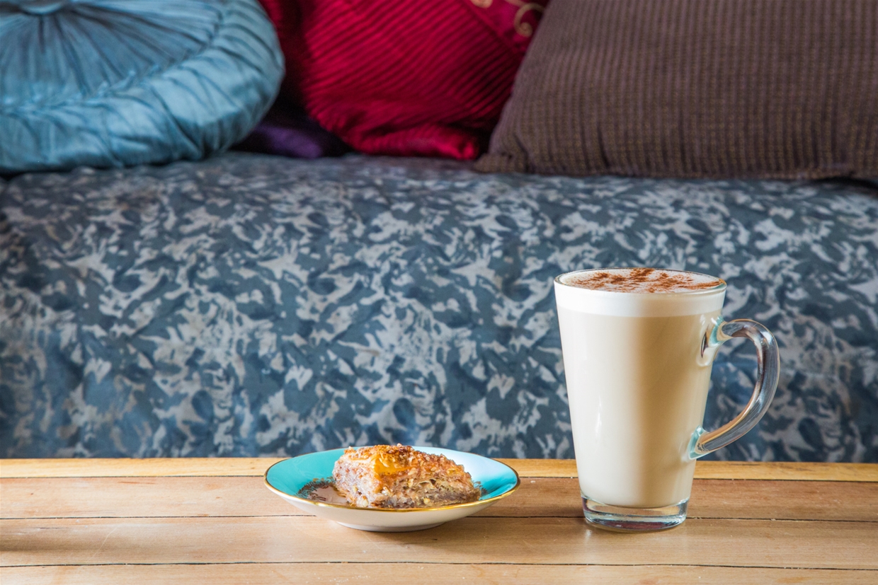 Best served with; Homemade Baklava – A baked filo treat layering pecans, almonds and light pastry, all fused together with honey. Flaky, and just like the chai, delicate.