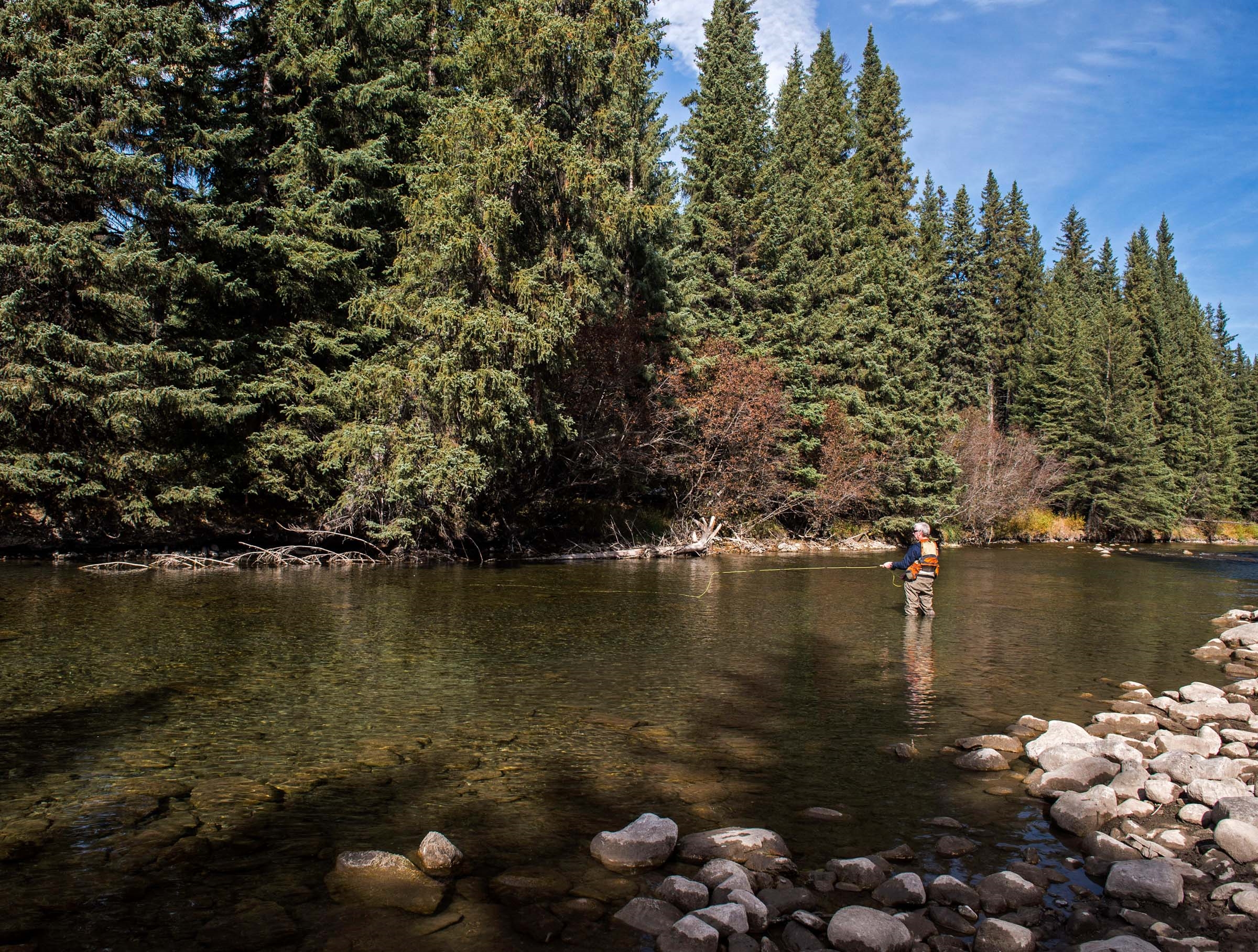 The Wigwam River, famous for its Bull Trout in the summer yet only a special few know the fall will bring Westslope Cutthroat to the surface to chase your hopper and mayfly imitations.