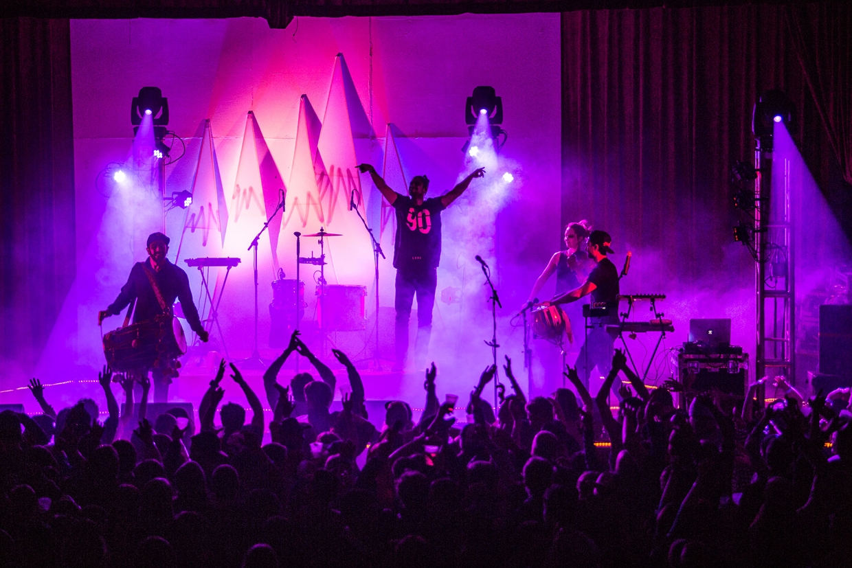 The band’s striking and energy-packed sound has evolved from their eclectic musical influences and their unique experiences as individuals. Their progressive pairing of acoustic instrumentation with electric counterparts, harmonies, and driving rhythm, continues to develop and reach new heights. Pushing the boundaries of the genre, they have incorporated a wide range of influences to create a sound that is uniquely called ‘Stoke Folk.’ The band is best known for their dynamic, high-energy and engaging live show that leaves no dance floor vacant.