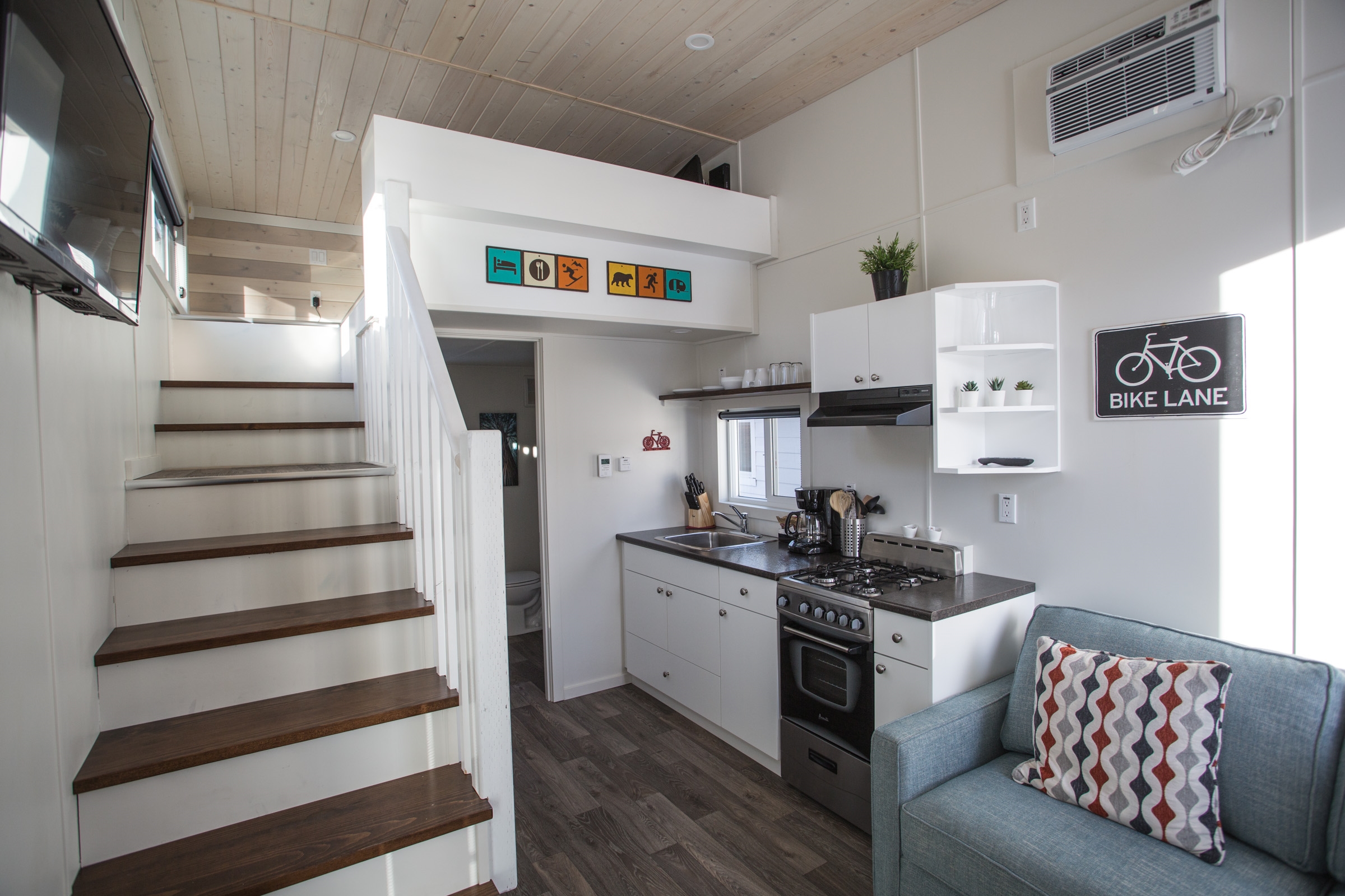 Experience tiny home living in the heart of Fernie. Relax in a charming one-bedroom and one-bathroom tiny home, loaded with all the amenities and situated together around a social gathering outdoor area. Local FernieStoke Ski Shuttle stop location during ski season.